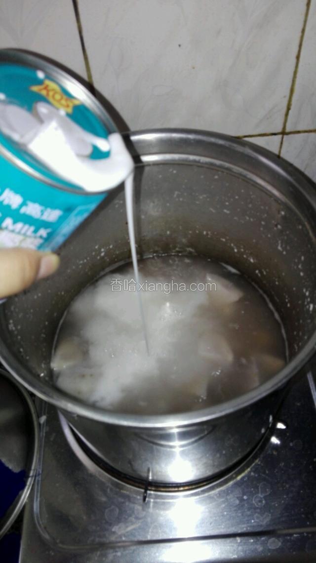 4.倒入西米,拿筷子不停的搅,滚两滚,就盖上盖子焖半个钟