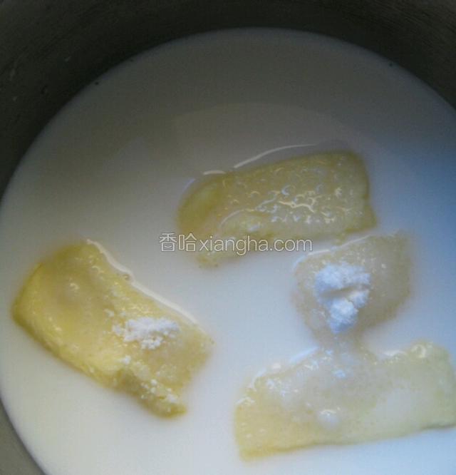 1.牛奶,加一点儿盐,放入黄油,软化,