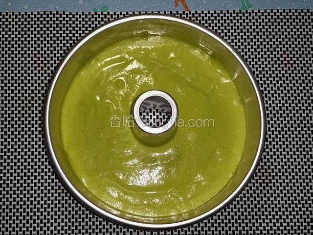 3.放凉的抹茶液倒入蛋黃混合物中拌勻