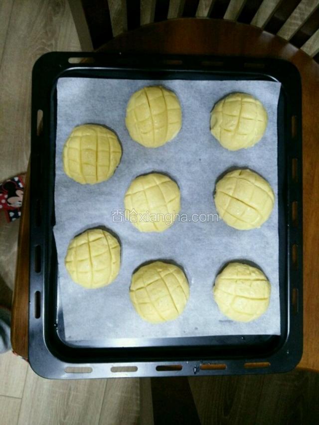 2.发酵好的面团排气,分成8份,醒发15分钟。