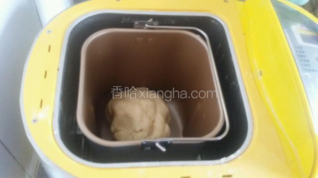 6.和好面团放进面包机捅,通电放置程序6和面15分钟