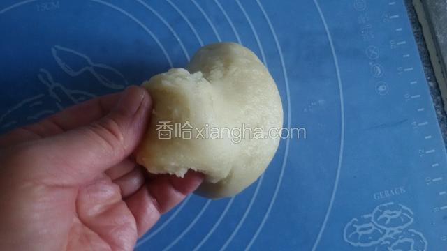 5.最后把月饼面粉倒入搅拌均匀,在用手揉成面团