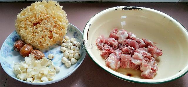6.浸泡过的莲子,百合用清水洗两次。蜜枣也清洗干净。