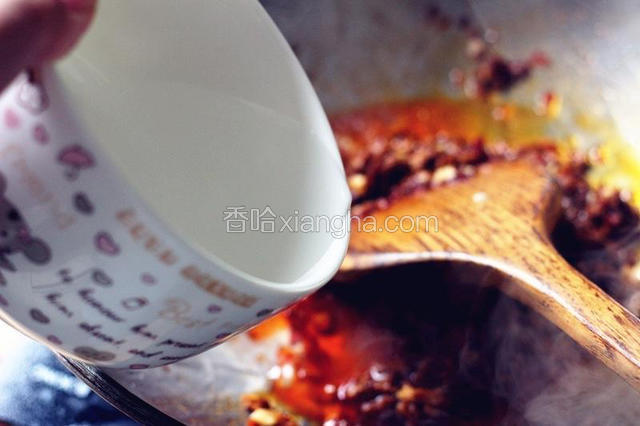 4.另起一锅,热锅冷油下牛肉末,油放稍多点,小火翻炒至微黄。