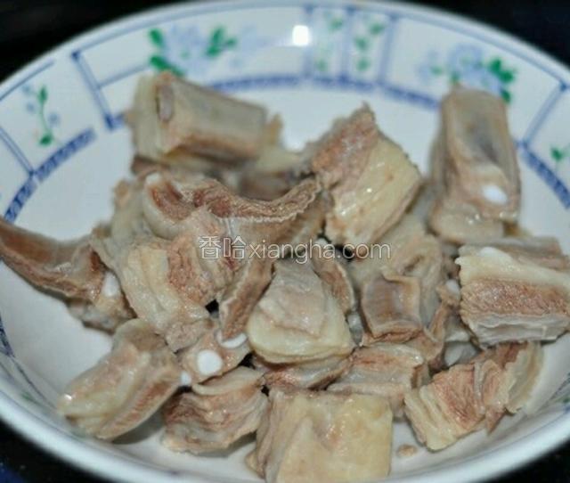3.锅内热水,放入羊排,大火烧开去浮皮,