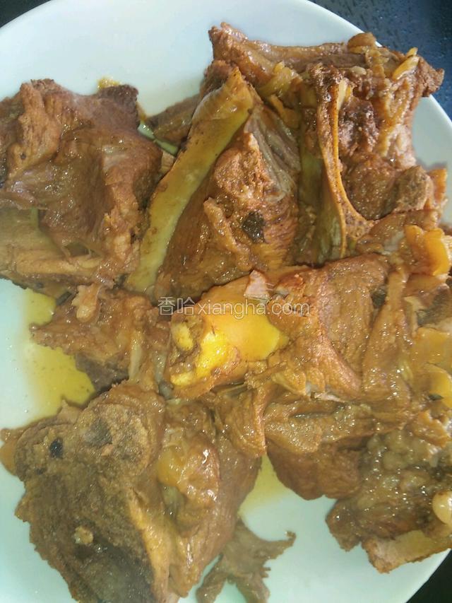 3.色拉油烧7成热,放入糖炒至颜色变红倒入高压锅内,压10分钟后改小火焖10分钟即可!