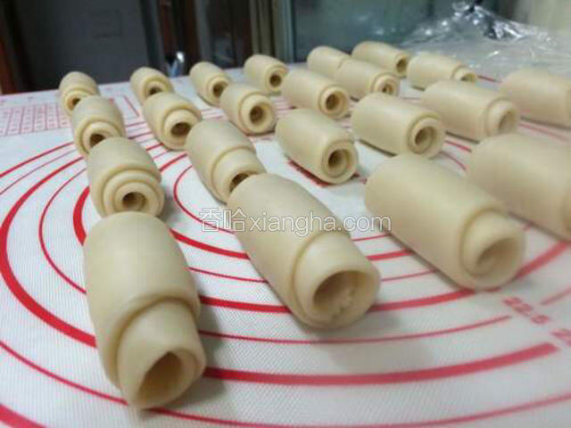 5.油皮、油酥松弛完毕后分别平均分成24份。