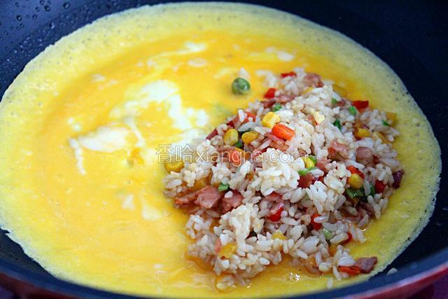 1.准备好食材:培根和彩椒切丁,小葱切葱花。