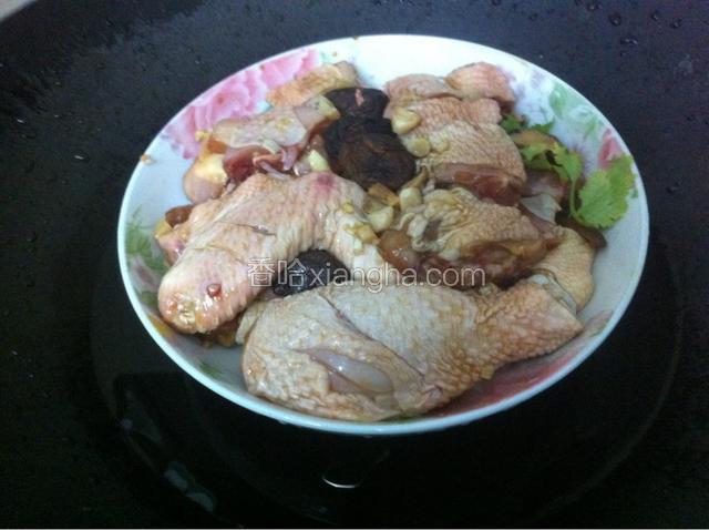 6.如图:将腌好的鸡放在上面