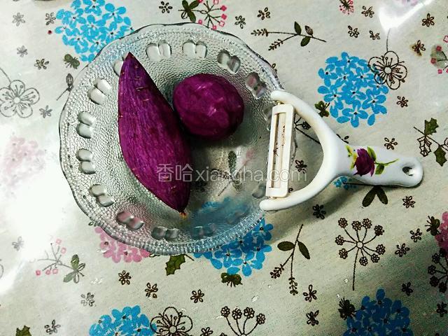 3.清洗干净紫薯,削皮。