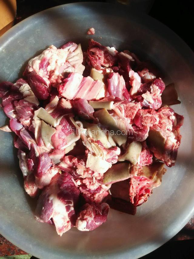 1.羊肉切块,用水浸泡20分钟,再冲洗多几遍,捞起备用!