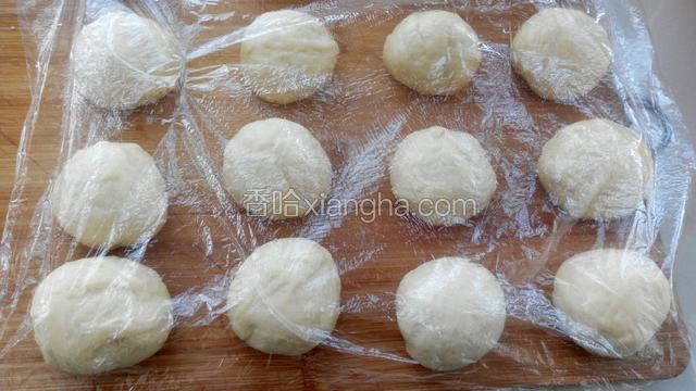 6.再次启动揉面程序揉几分钟,相当于给面团排气。然后把面团分成均匀的十六份,滚圆松弛二十分钟左右。