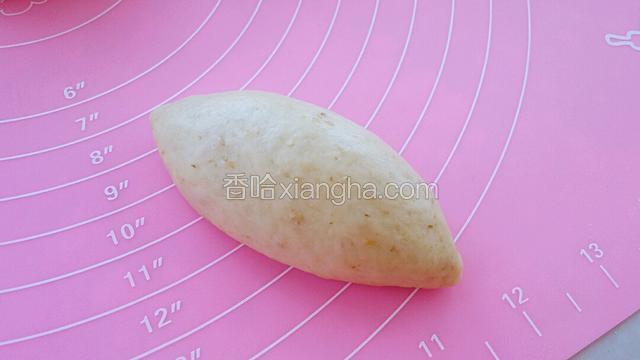 6.把小面团整型成两头尖、中间粗的橄榄形状。