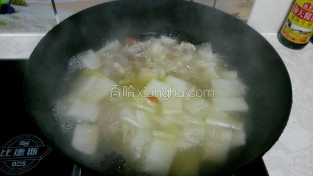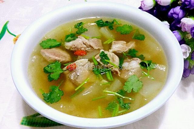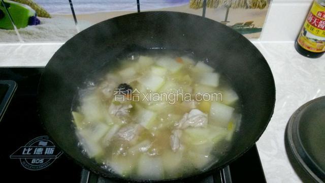 放冬瓜片时排骨基本熟了,不用再熬太久,冬瓜片由白色变成透明就熟了。