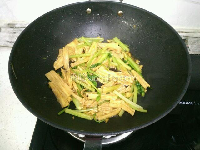 1.备好图中食材。腐竹提前用水泡发,洗净切段,芹菜去筋折小段洗净,蒜切粒。