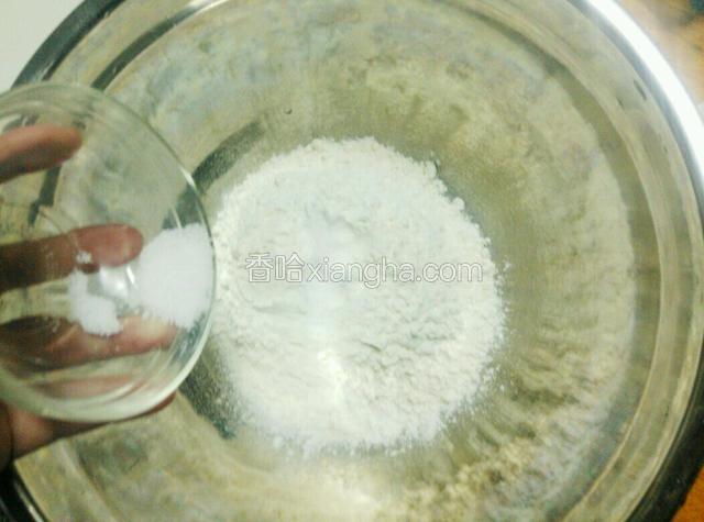 2.低筋粉放入一个稍大点的容器中加入小苏打