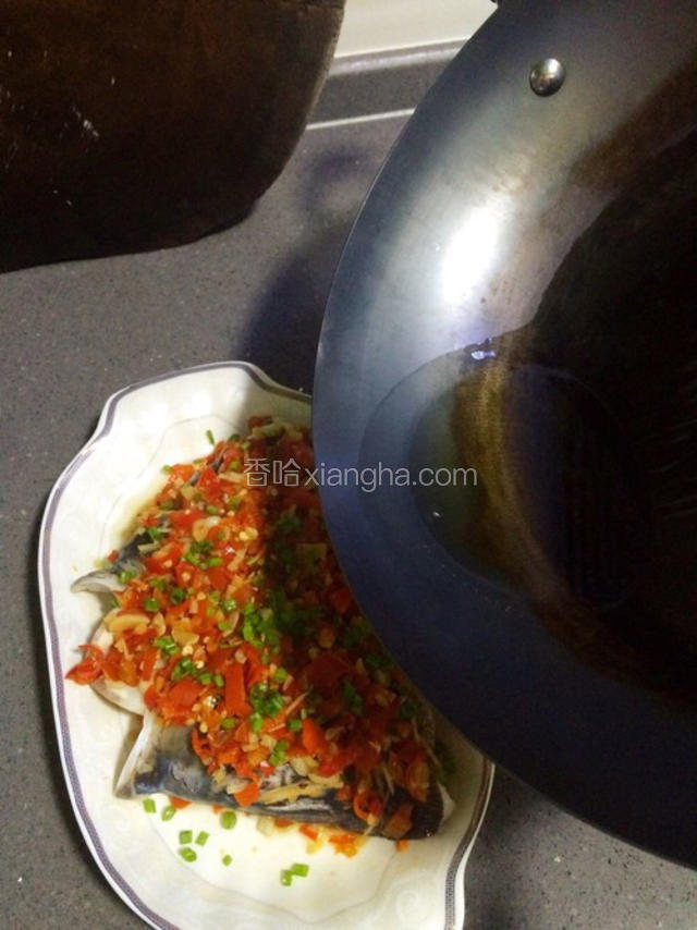 6.把鱼放在盘子上,上面再放一层姜葱。