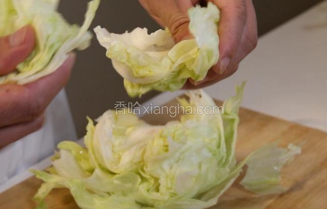 1.圆生菜洗净,撕成大片,放入盘中备用。