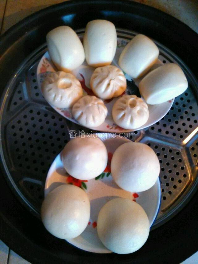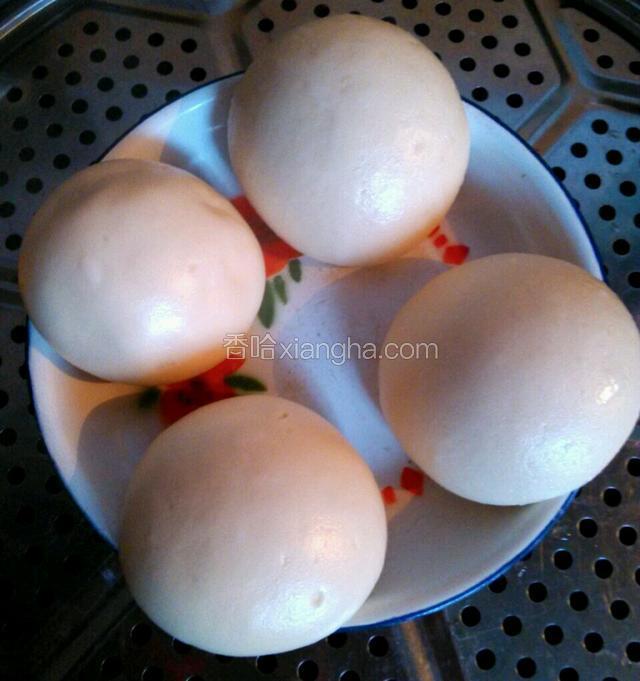 4.把发酵好的面团拿出来放到案板上,因为手上沾了面粉,所以面团不会沾在手上
