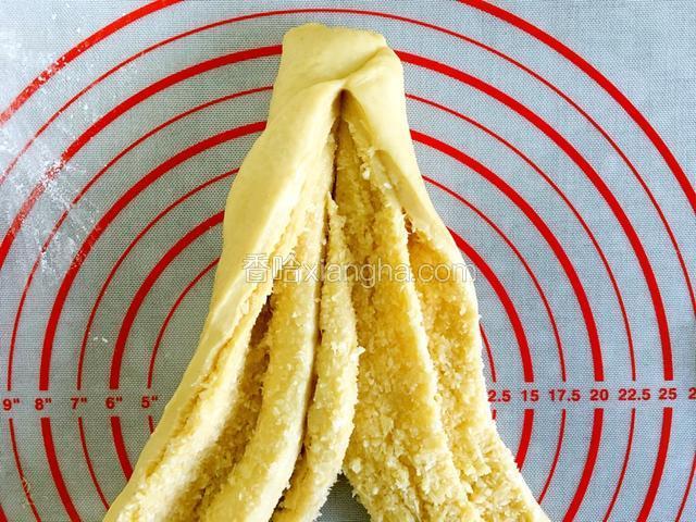 5.手指沾面粉按面团,洞口不回缩不塌陷就可以了。