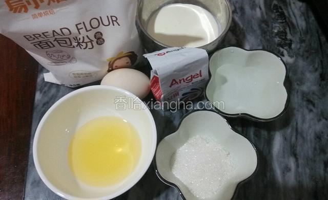 2.把高筋粉、淡奶油、水、鸡蛋、酵母、盐放盆子里搅拌成絮状