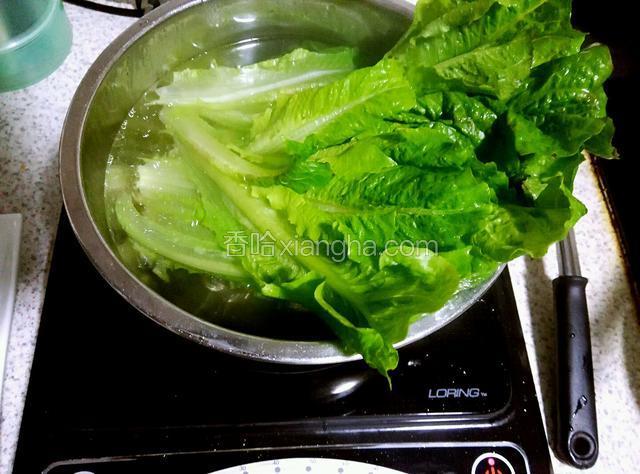 2.菜叶放入加了点盐和油的开水中半分钟左右捞出