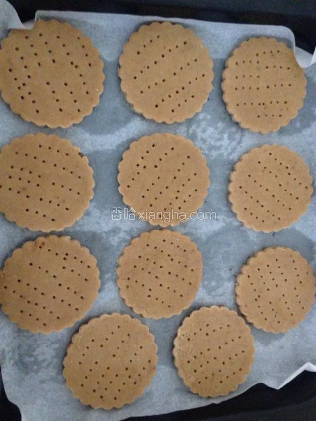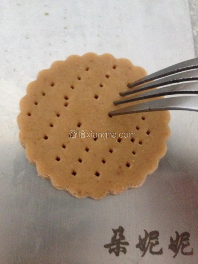 4.密封袋装好面团冷藏半小时。擀成0.5cm厚的面片。用喜欢的模具压出形状,用叉子叉一些洞。