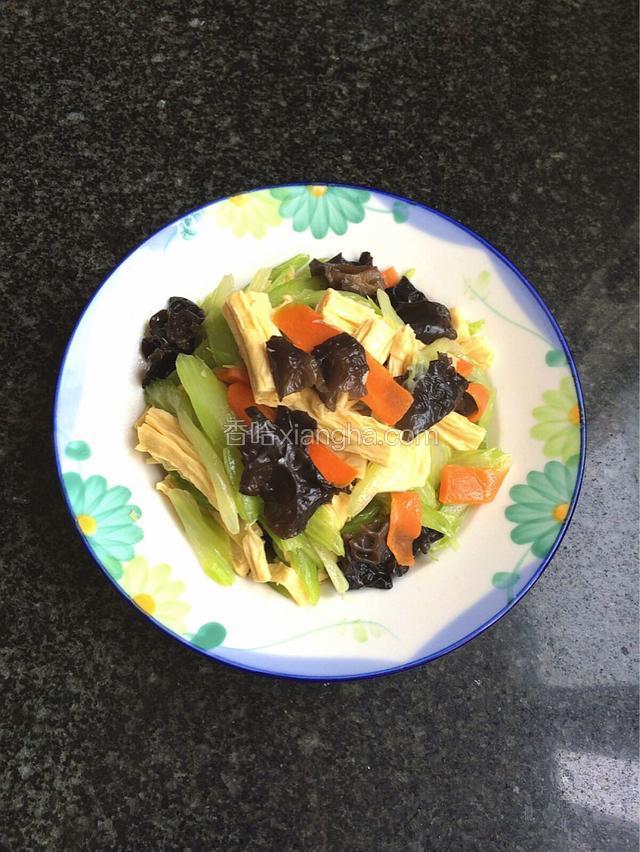 1.准备好所需食材。腐竹和木耳提前泡发好。