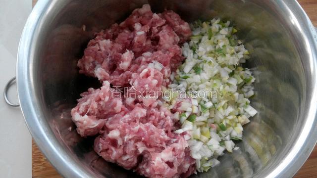 4.准备好拌馅用的食材,利用面团醒发的时间拌馅。