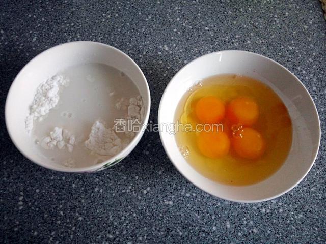 5.鸡蛋磕入碗中,水淀粉放入碗中准备好