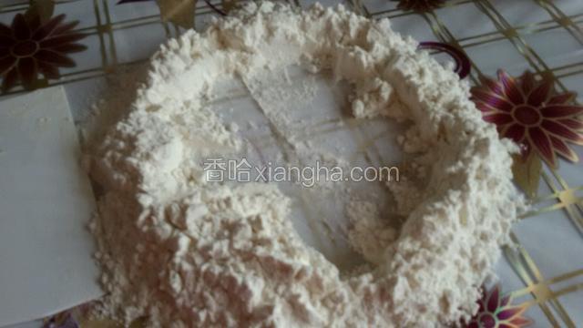 6.把过完筛的面粉,从面粉中间挖一个坑。