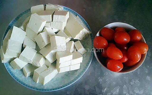 1.准备好食材,豆腐提前切块。