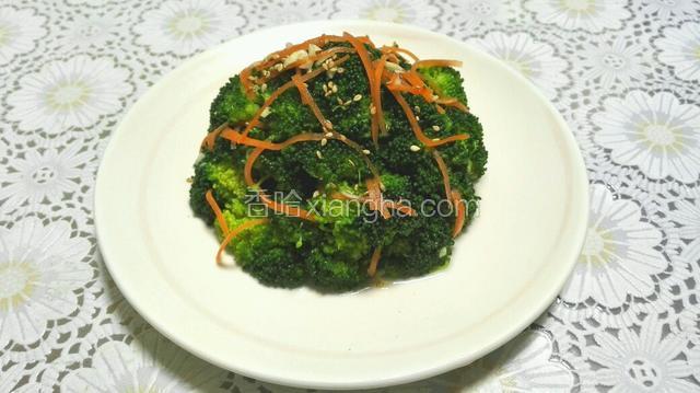 2.用水将西兰花和胡萝卜丝炒熟,过凉水冲凉