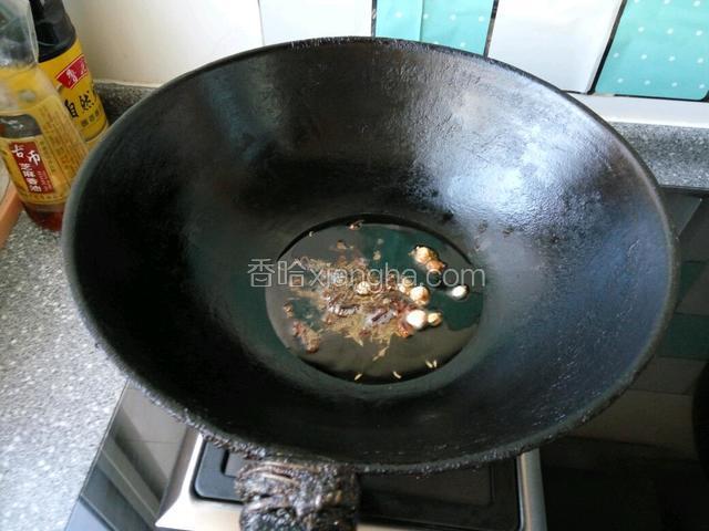 3.锅中放少许食用油,加入花椒,大料,豆蔻,孜燃粒熬出香味备用