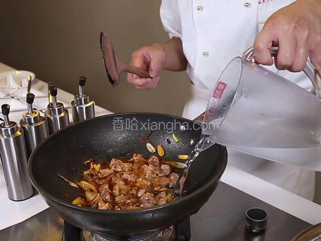 6.放入焯好水的羊肉块,大火翻炒几下。