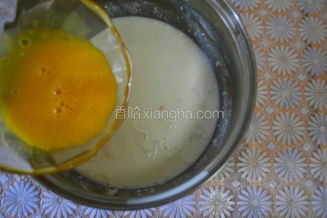 4.蛋黄打散倒入小锅中,搅拌均匀!