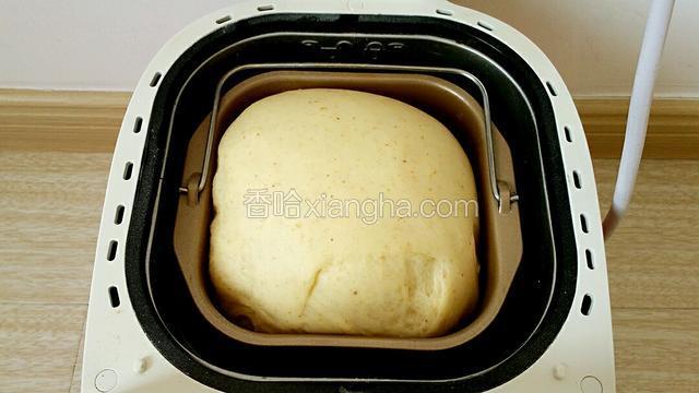 4.直接在面包桶内发酵至原来面团的2.5倍大,再次启动面包机揉面几分钟,相当于给面团排气。