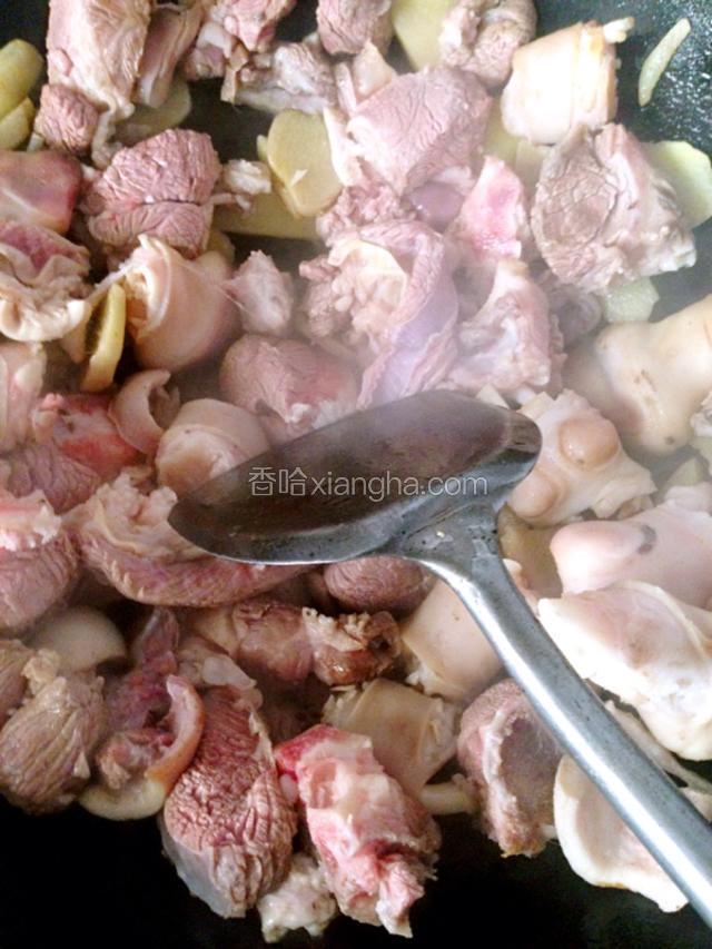 6.然后倒入羊肉翻炒至5分钟左右