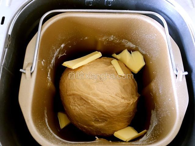 4.面包材料除黄油外,先把液体部分放入面包桶,盐和糖要对角方向放置。(鸡蛋放半个)