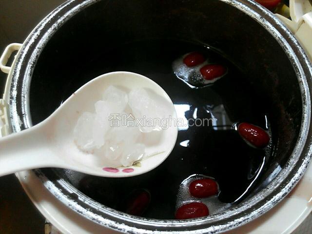 4.红豆黑米煮好,放红枣和冰糖(第二天的早上醒了红豆和黑米就煮好)