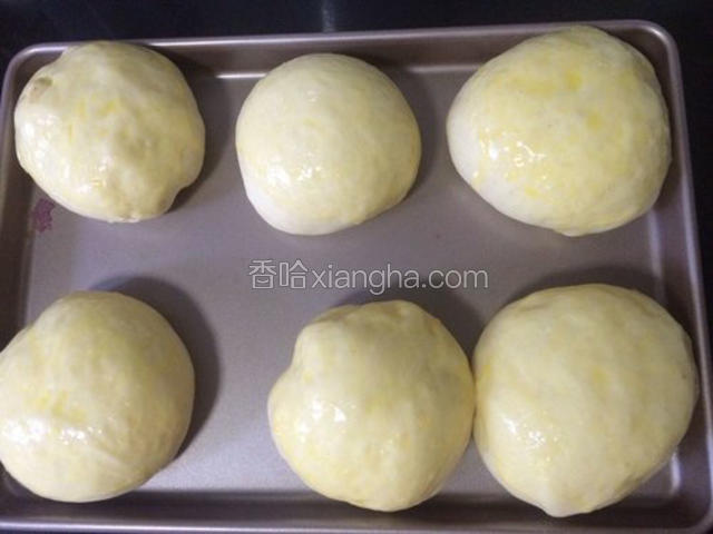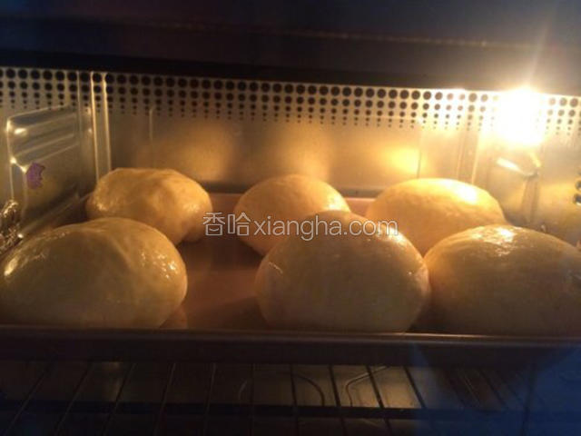 6.将面包桶放入面包机里,按和面键,揉面1小时。然后再按发酵键发酵1小时左右,发酵至两倍大即可,然后再启动和面键2分钟左右,给面团排气