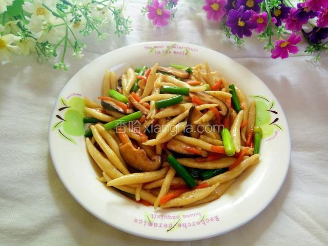 3.在切成菱形片!放在两双手的手心里搓成两头尖中间粗约3厘米的条!