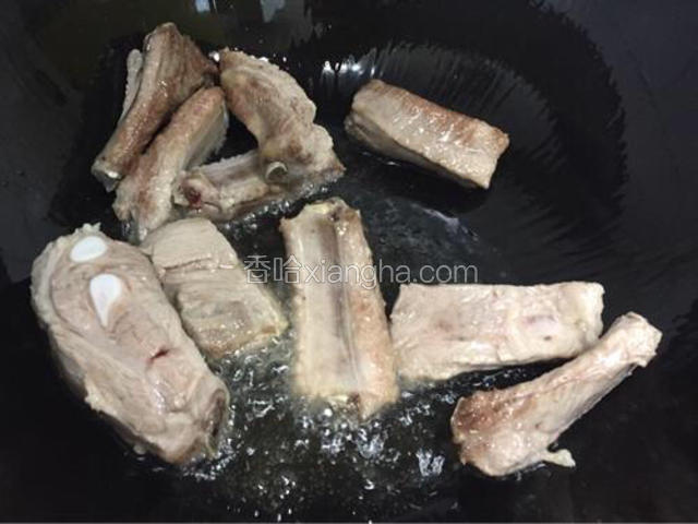 4.焯排骨,排骨下到热水锅中,开锅后煮三分钟左右,停火。