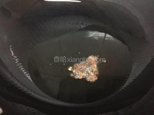 6.起锅烧热,放入花生油,油热后加入花椒粒,炒香后捞出扔掉花椒粒。