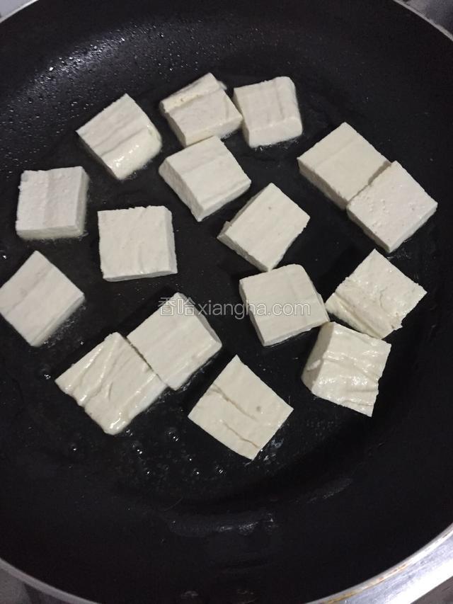 3.北豆腐切小块,用平底锅煎至两面金黄色