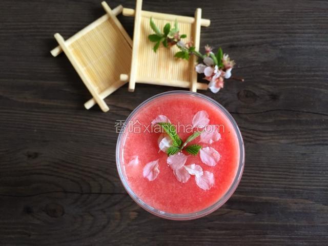 6.6.用网筛过滤掉残渣,一杯浓稠香甜的混合果蔬汁就做好了,酸酸甜甜特别好喝。