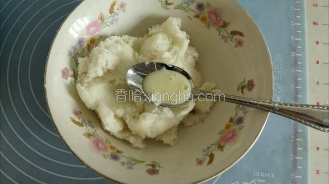4.倒入碗中加一勺炼乳约10克拌匀备用