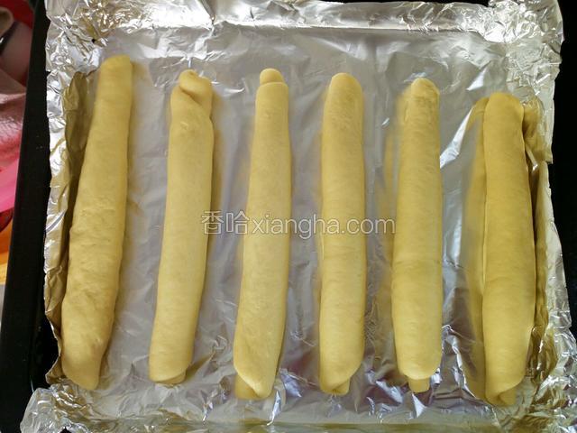 5.发酵至原来的两倍大,手指沾水或干粉探入面团不回缩即完成发酵。