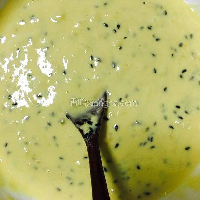 2.把香蕉切薄片捣烂➕鸡蛋➕面➕蜂蜜➕牛奶➕芝麻➕2勺水(注:➕时每个步骤均匀搅拌)让他们融合在一起相互了解 相互熟识(约会时间为10分钟)?