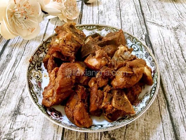 1.首先将大块猪骨头略洗,置大盆中加满清水浸泡约6~12小时,中间换水数次;然后将泡净血水的脊骨冲洗数遍后置高压锅中加啤酒和料酒没过猪骨;再放入两大勺干黄酱。
